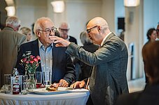 Nach einem guten Mittagsimbiss mit vielen Gesprächen erwartete die Jubiläumsteilnehmer ein musikalisches Feuerwerk eines Violinen-Duetts mit Amelie Herzogin von Württemberg und Laura Hampe sowie die Lesung von selbst geschriebenen Texten durch Diana Gräfin zu Waldburg-Zeil. "Der Tanz des Lebens" faszinierte die Zuhörer und wäre allein schon eine Reise nach Altshausen wert gewesen. In seinen Schlussworten dankte der Vorstandsvorsitzende Ralf Klein-Jung dem Haus Württemberg und besonders auch dem anwesenden neuen Hausherrn, Herzog Wilhelm von Württemberg für die wunderbare Gastfreundschaft in der Alten Remise in Schloss Altshausen, allen Stiftungsrätinnen und -räten für ihr unermüdliches Engagement zu Gunsten von Kindern und Jugendlichen sowie den anwesenden Spendern und Stiftern für ihre anhaltende und großzügige Förderung der Stiftungsarbeit.
