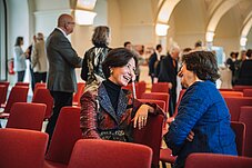 Besonderer Gast war Landtagspräsidentin Mutherem Aras, die im Dialog mit Moderator Eckhardt Rahlenbeck nicht nur aus ihrem verantwortungsvollen Amt berichtete, sondern auch Vieles aus ihrer eigenen Lebensgeschichte preisgab und so verstehen ließ, was sie in Kindheit und Jugend geprägt hat und zu der starken Frau hat reifen lassen. Ihr herzlicher Besuch war eine große Bereicherung der Jubiläumsveranstaltung.